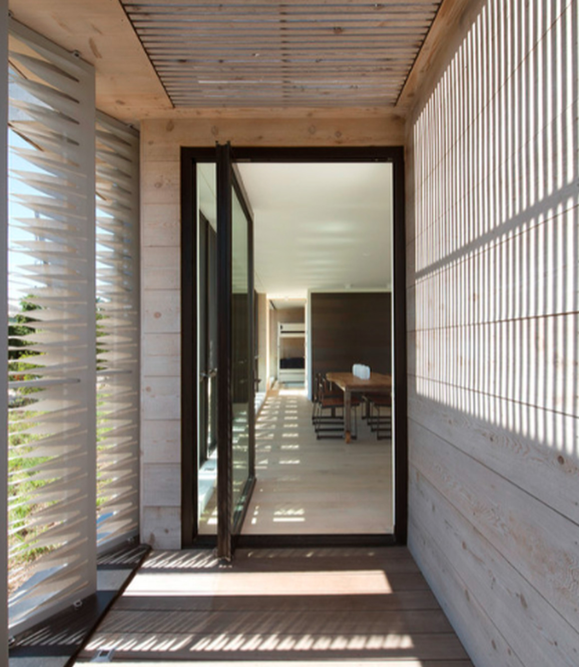 Mặc dù được sử dụng chủ yếu để làm vách ngăn cho không gian bên trong nhà, song cửa trượt ở lối ra vào vẫn là một giải pháp thay thế khả thi. Vì mở sang một bên thay vì hướng ra ngoài hoặc vào trong nên cửa trượt đặc biệt hữu dụng cho những căn nhà chật chội.