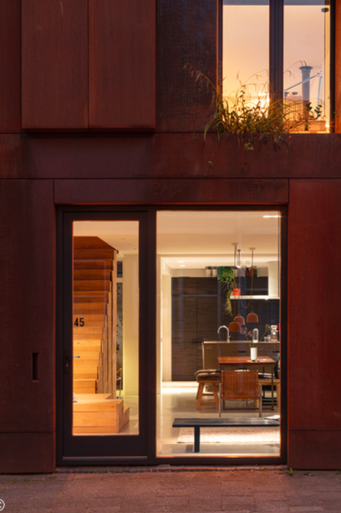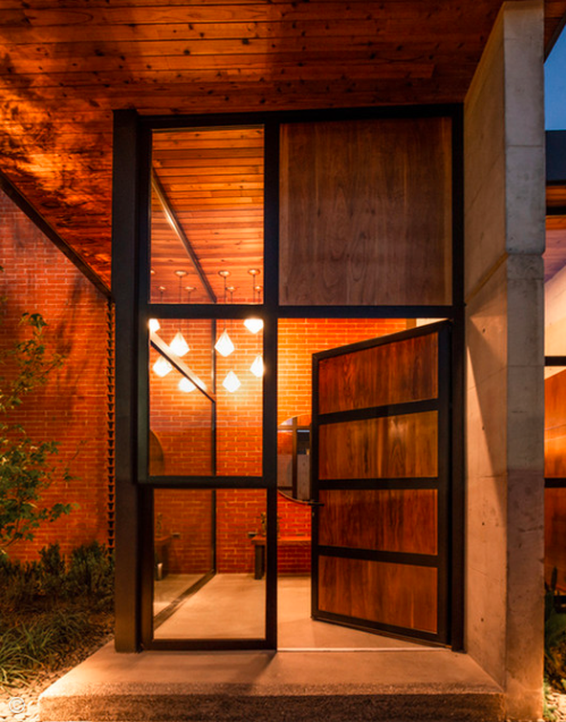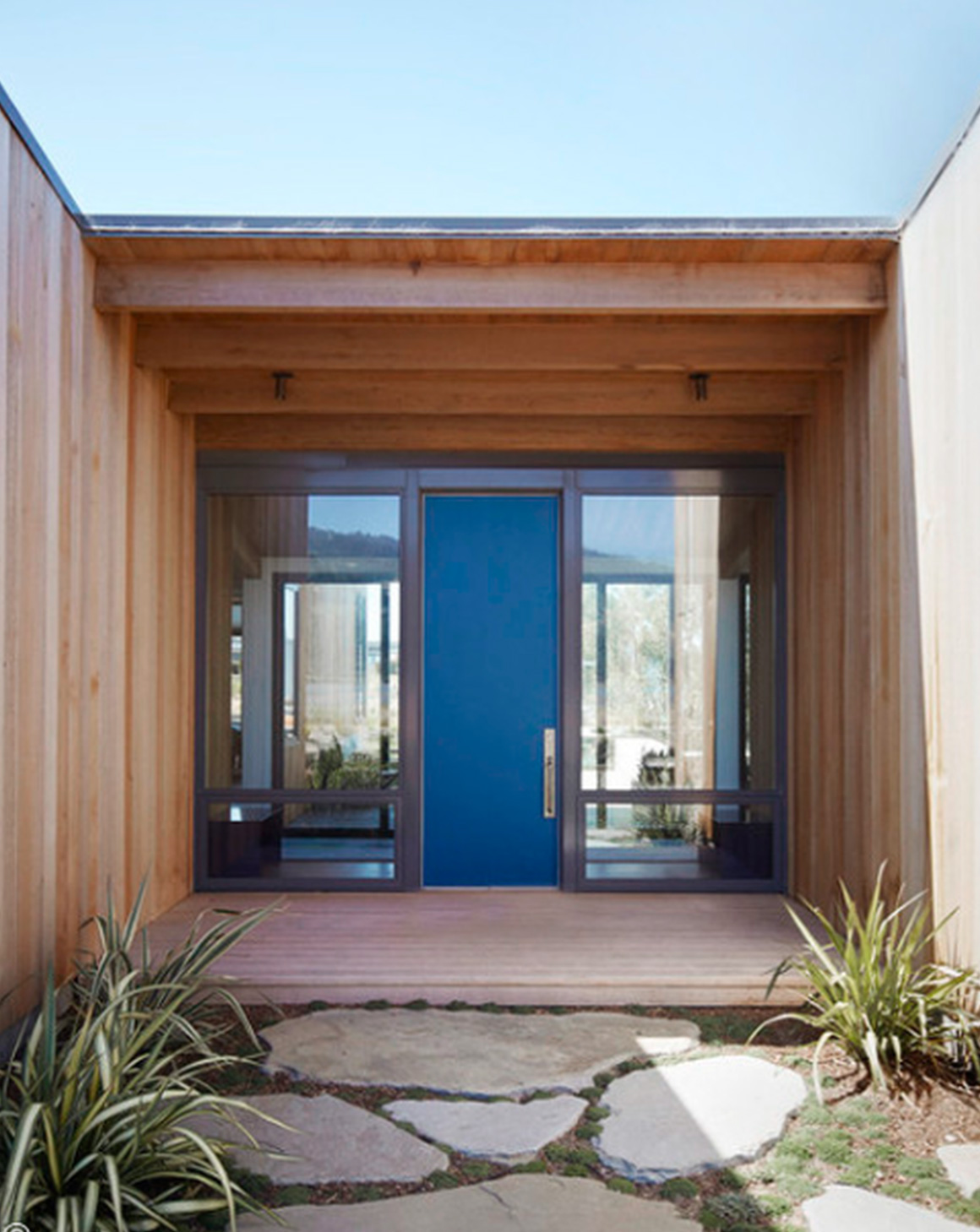 Khi ưu tiên tầm nhìn và ánh sáng, cửa ra vào bằng kính và sợi thủy tinh là lựa chọn lý tưởng. Cửa kính đang trở nên phổ biến trong các thiết kế nhà ở hiện đại. Thường được kết hợp với khung thép, cửa kính giúp ngôi nhà luôn tràn ngập ánh sáng tự nhiên vào ban ngày, đồng thời mang đến một vẻ ngoài hiện đại. Cửa kính giúp xóa bỏ ranh giới giữa không gian bên ngoài và bên trong, khiến nội thất bên trong và cảnh vật bên ngoài hòa nhập với nhau, tạo nên bức tranh tuyệt đẹp.