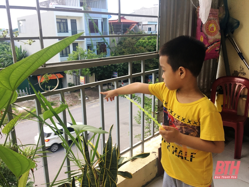 Khu vực lô gia được nhiều gia đình tại khu chung cư Đông Phát (phường Đông Vệ, TP Thanh Hóa) lắp đặt song sắt nhằm đảm bảo an toàn cho trẻ em.
